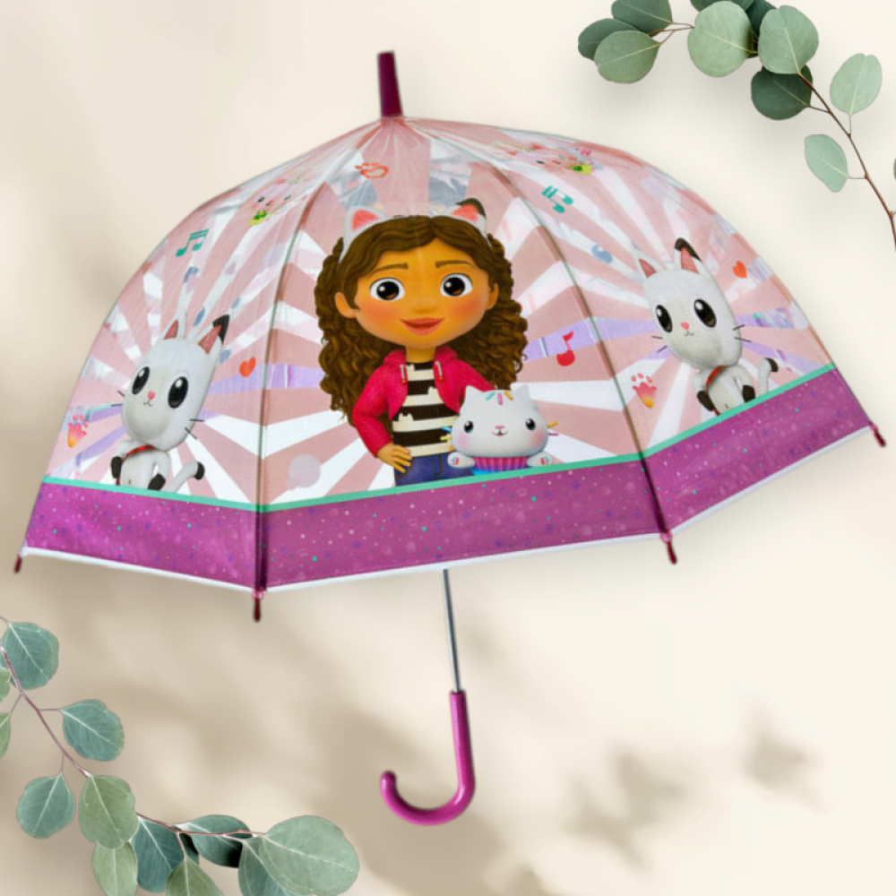 Laat je kleintje stralen tijdens regenachtige dagen met de betoverende paarse kinderparaplu van Gabby's Poppenhuis! Deze vrolijke en praktische accessoire is perfect voor kinderen vanaf 3 jaar en maakt elke regenachtige wandeling een stuk leuker.