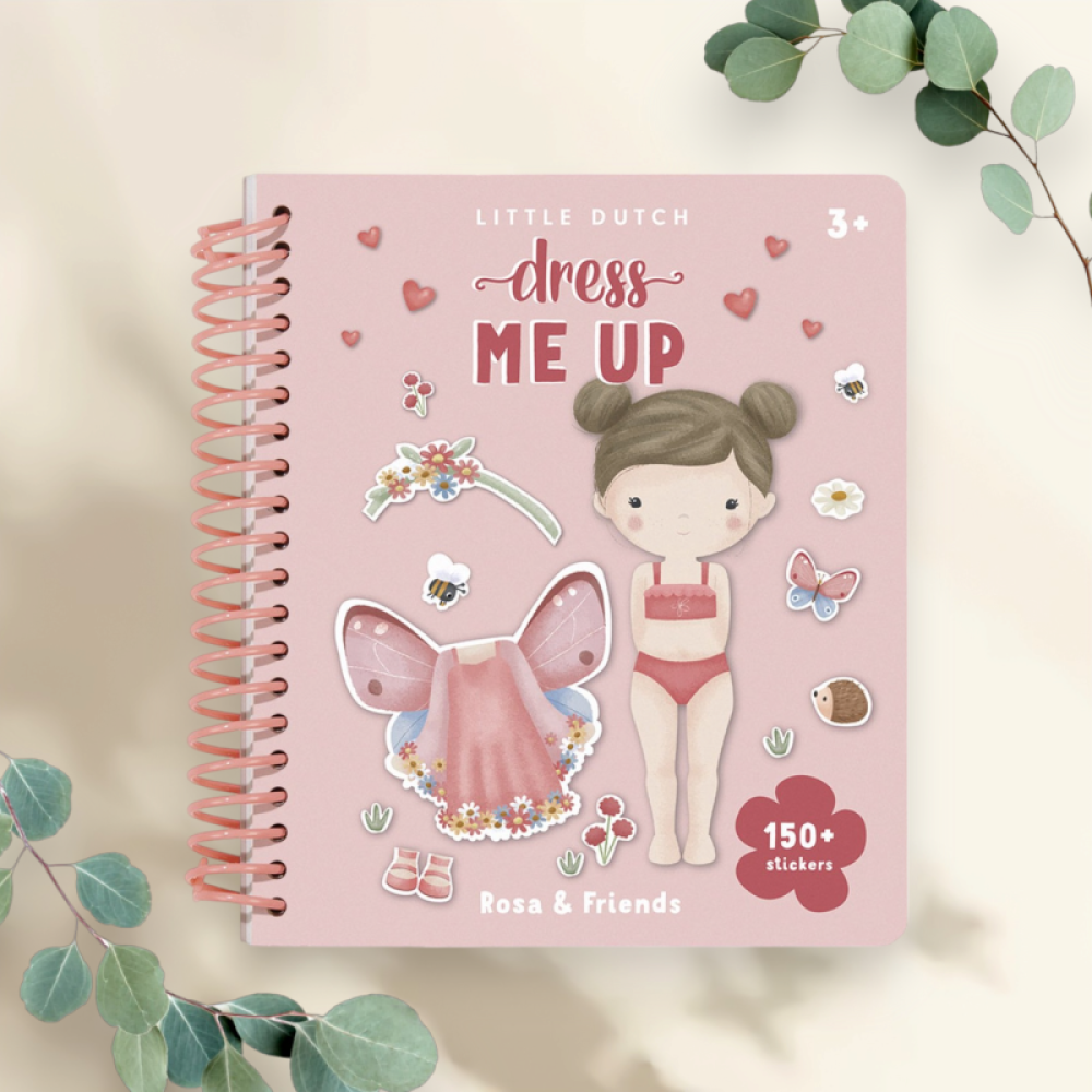 Met het Little Dutch Rosa & Friends aankleedboek kun je je creativiteit de vrije loop laten als een echte modestylist! Dit leuke boekje bevat 24 pagina’s vol afbeeldingen van Rosa, Evi en Julia, samen met 12 pagina’s stickers van de mooiste kleding en accessoires. Of je nu kiest voor een prachtige roze prinsessenjurk of een eenvoudige, casual outfit, jij bepaalt de stijl van de meiden.