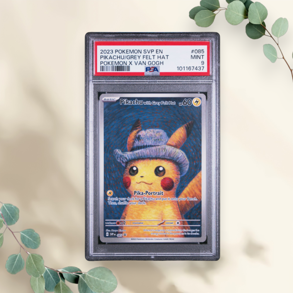 Voeg een zeldzaam exemplaar toe aan je Pokémon-verzameling met de Pikachu Grey Felt Hat in Van Gogh stijl in PSA 9! Deze promokaart is alleen uitgekomen in Nederland en Belgie en is gecertificeerd met een PSA 9-score. Een must-have voor verzamelaars en liefhebbers van Pokémon TCG!