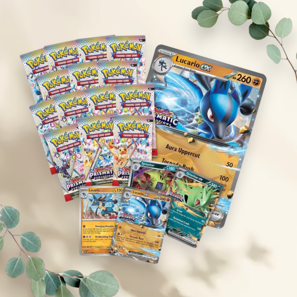 Ontdek de kracht van twee iconische Pokémon met de Prismatic Evolutions Lucario ex & Tyranitar ex Premium Collection Box! Deze exclusieve Pokémon TCG-set bevat krachtige promokaarten van Lucario ex en Tyranitar ex, samen met meerdere Prismatic Evolutions boosterpacks. De box is ideaal voor zowel verzamelaars als competitieve spelers die hun deck willen versterken met indrukwekkende kaarten. Dankzij het premium ontwerp en de unieke inhoud is deze box een echte blikvanger in elke collectie.